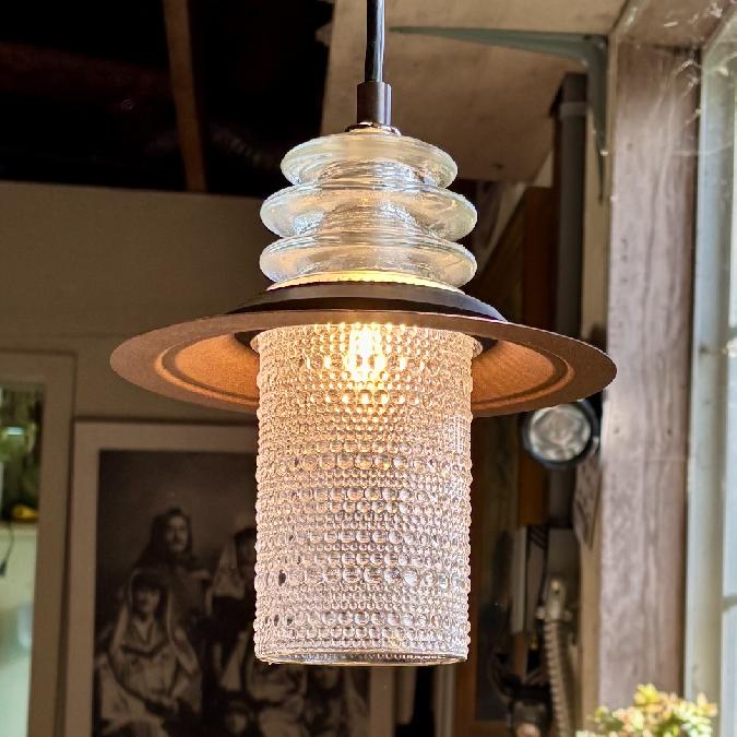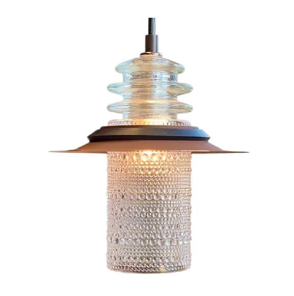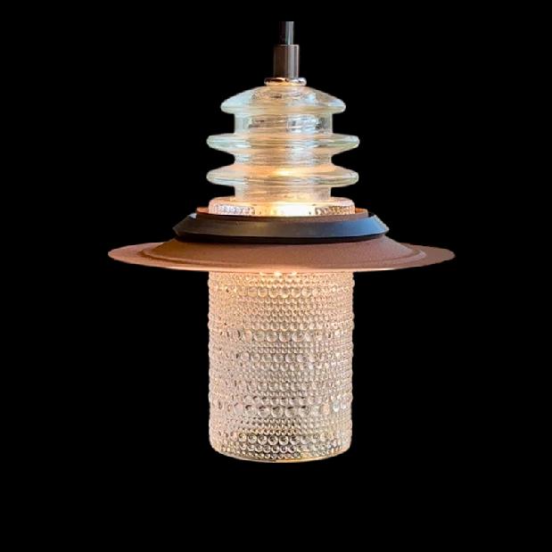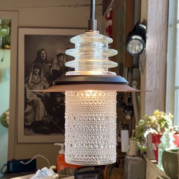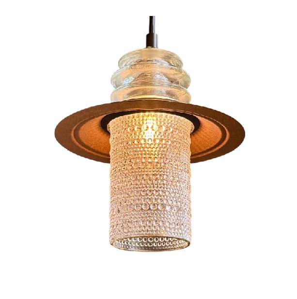 Clear Beaded Glass Globe Pendant Insulator Cap Metal Hood