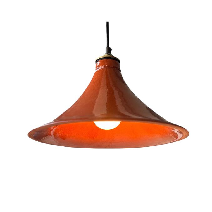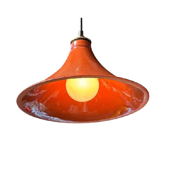 Tagines are a North African earthenware clay pot with a distinct conical lid used for cooking traditional Moroccan dishes. The conical lid creates a unique basting environment trapping steam for cooking and it makes a wonderful light fixture with an even warm glow.